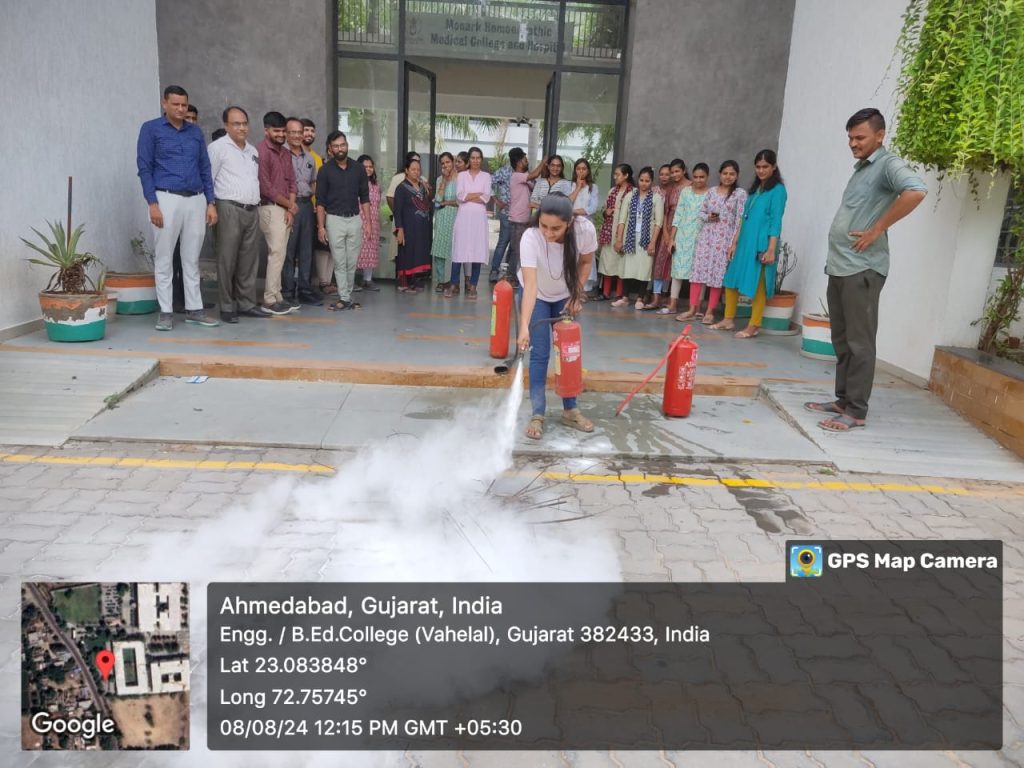 Fire safety training at monark homoeopathic medical College vahelal 08/08/24